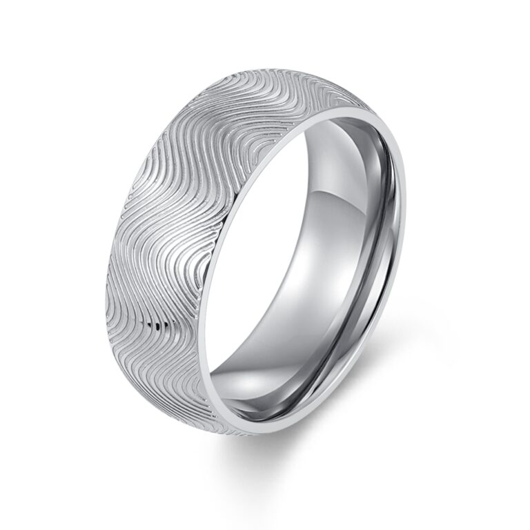 Men’s Polished and Brushed Stainless Steel wedding ring/band with grooved ripple pattern rounded