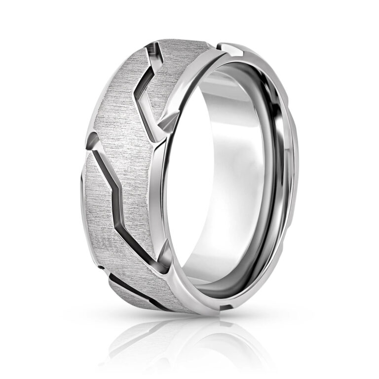 8MM Width Brushed Titanium High Polish Beveled Edges Bold Exterior Engraving Lightweight Smooth Comfort Fit in silver/IP Black plated Color