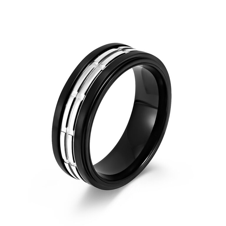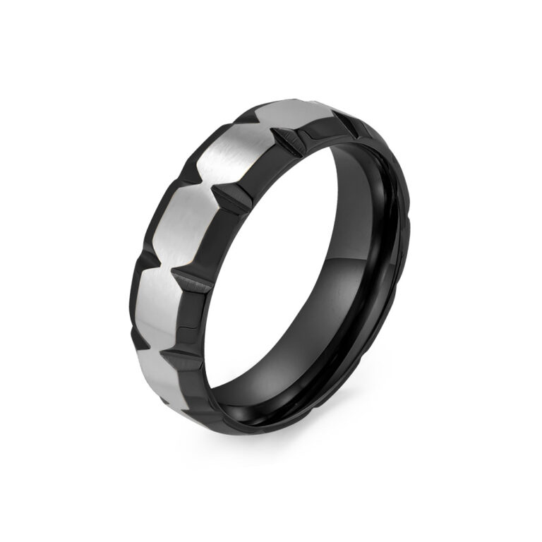 Men’s Stainless Steel simple beveled V-Slot Ring in Black/Gold colors