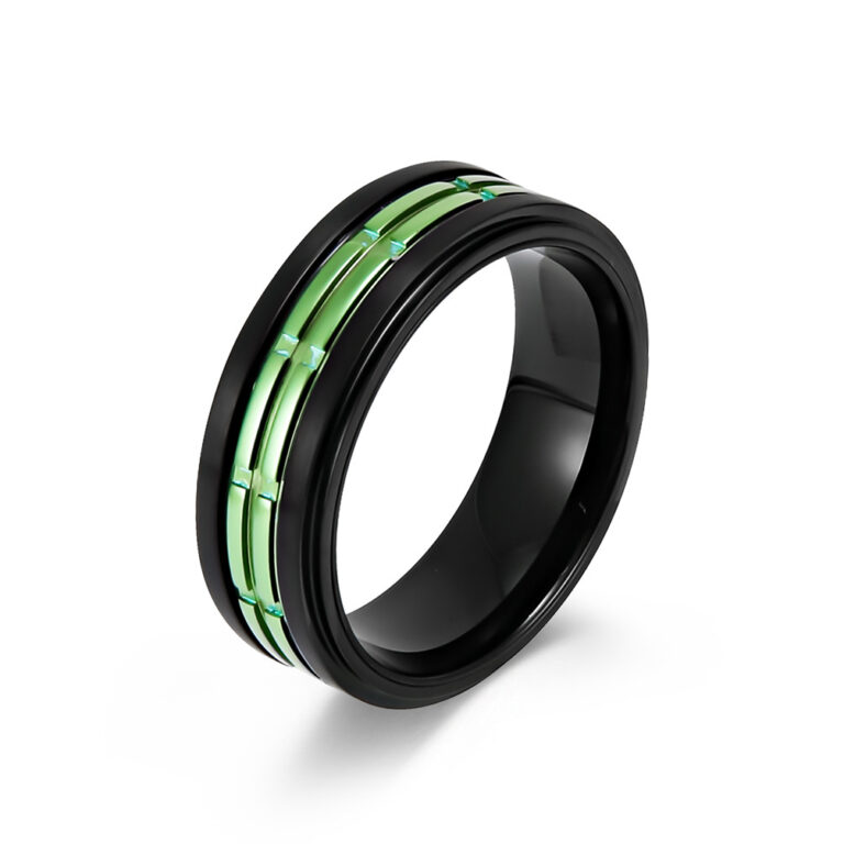 Men’s New Stainless Steel Two Tone Fashion Ring in Black/Green and Black/Steel colors