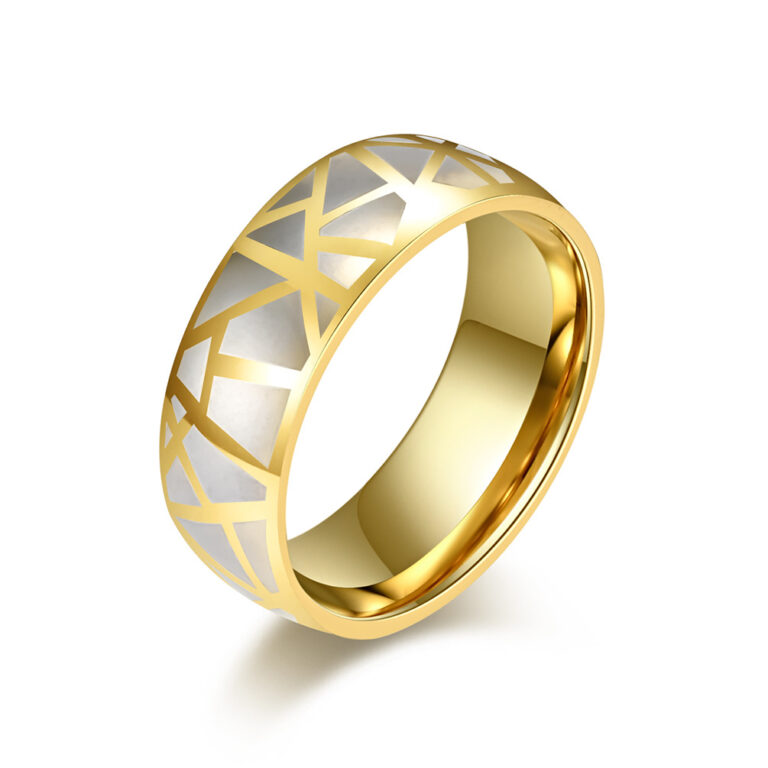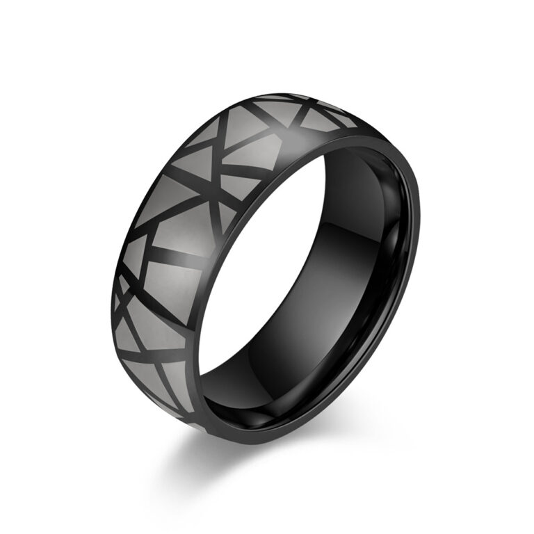 Men’s Stainless Steel Embossed Cracked Pattern Ring in Black/Gold colors