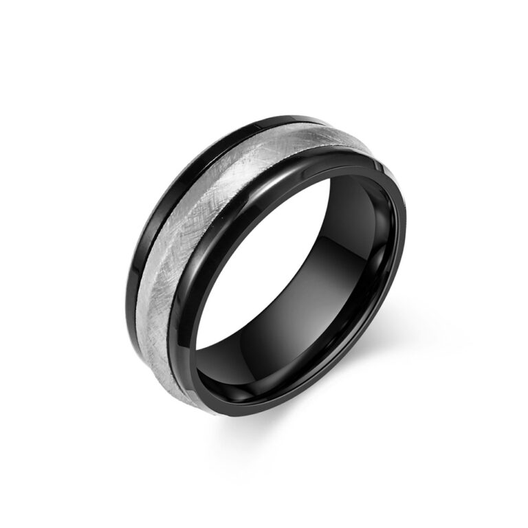 Men’s Stainless Steel Innovative Dual Tone Ring with brushed Steel and Black/Gold colors