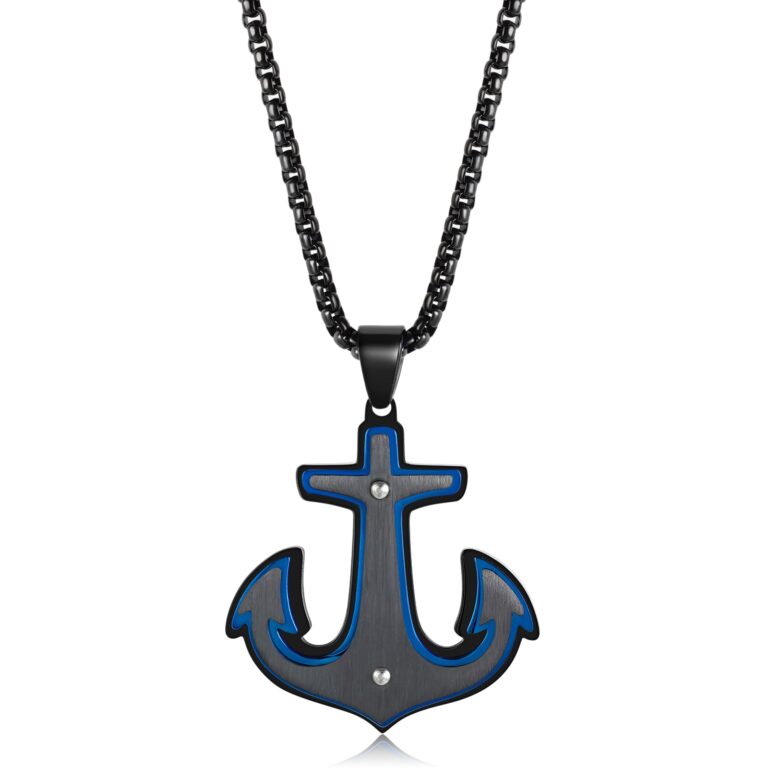 Men’s Stainless Steel Three Layered Anchor Pendant, available in Steel/Black/Gold colors