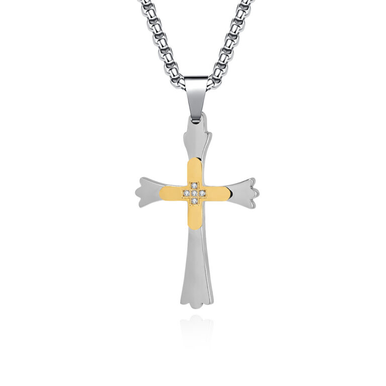 Men’s Original simple crack stainless steel diamond pattern cross pendant