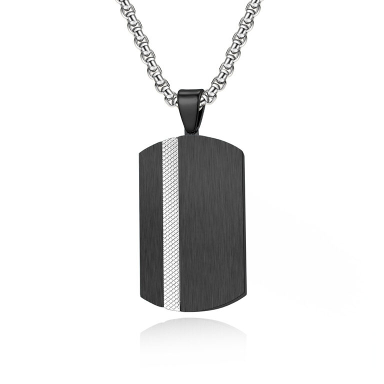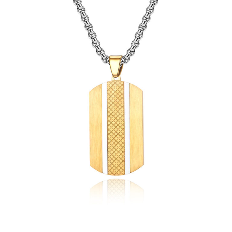 Men’s 316 Stainless steel brushed checkered two-tone dog tag pendant in Black/Blue/Gold colors