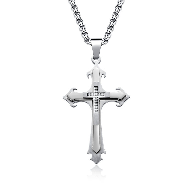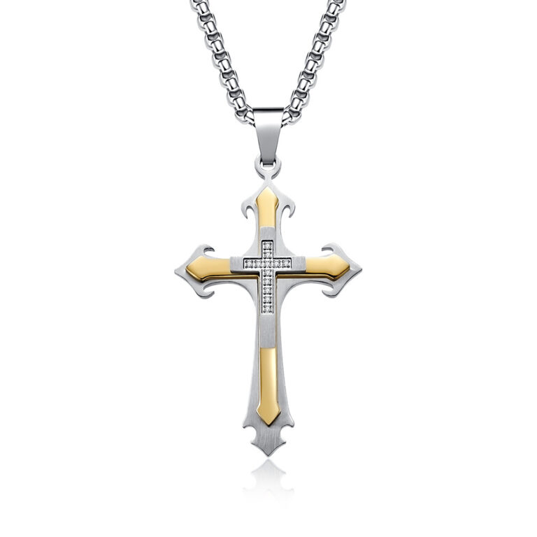 Men’s 316 Stainless steel three-layer combination CZ stone cross pendant fashion vintage in Steel/Gold/Black