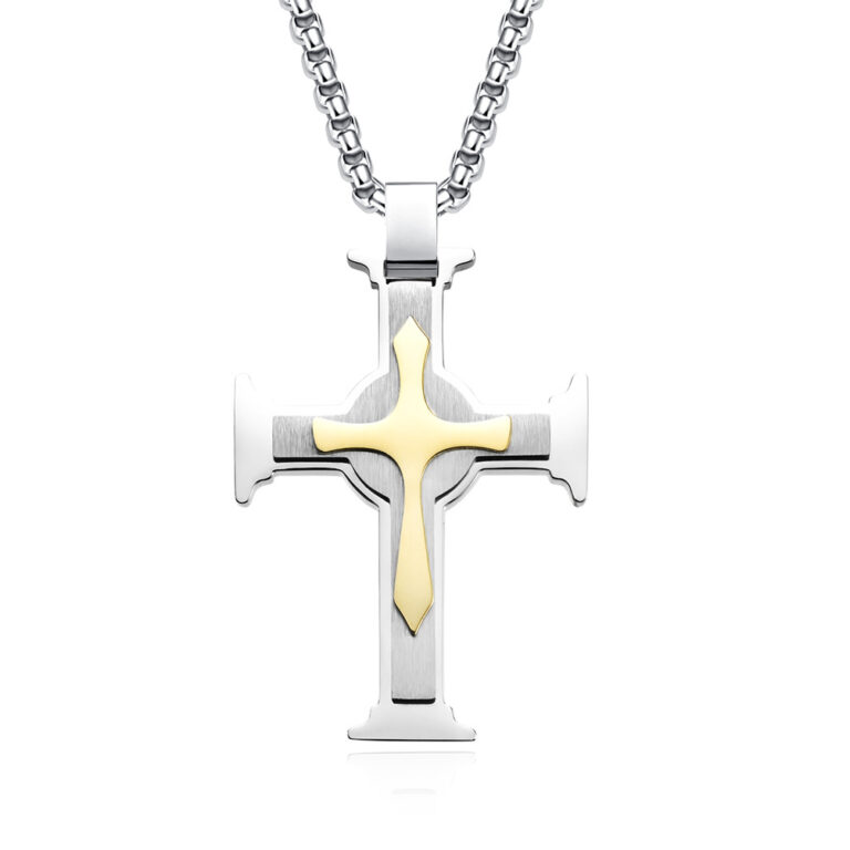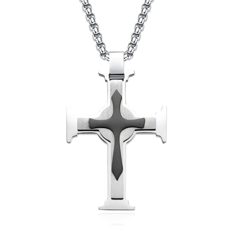 Men’s 316 Stainless steel three-layer combination vintage Celtic cross pendant in Steel and IP Black/Gold colors