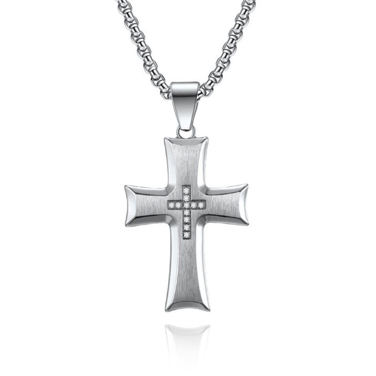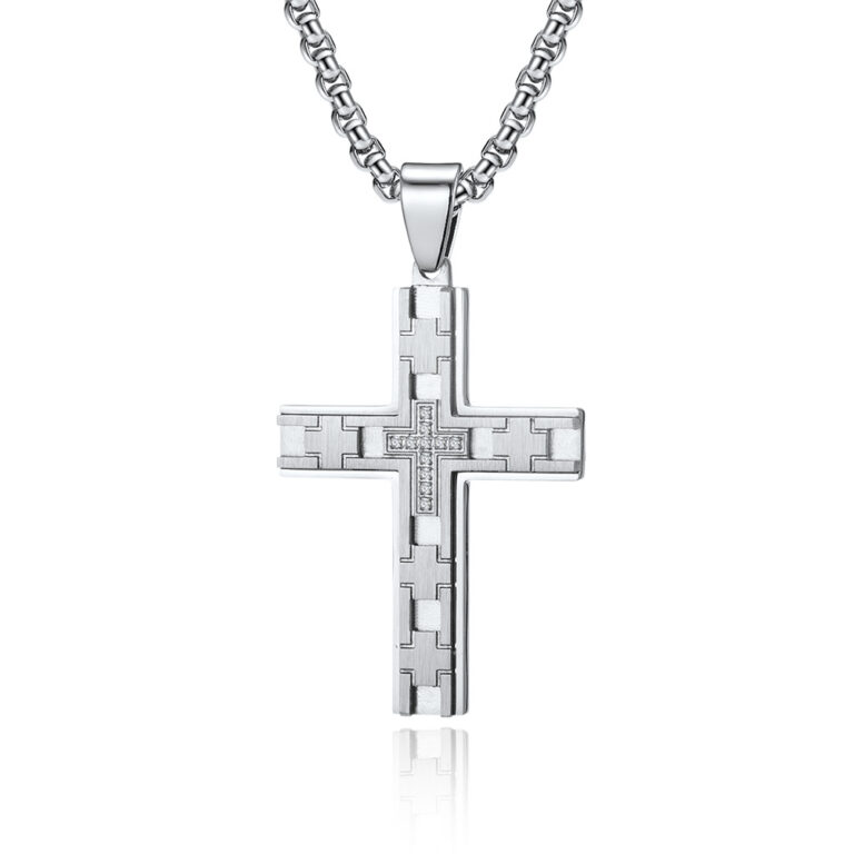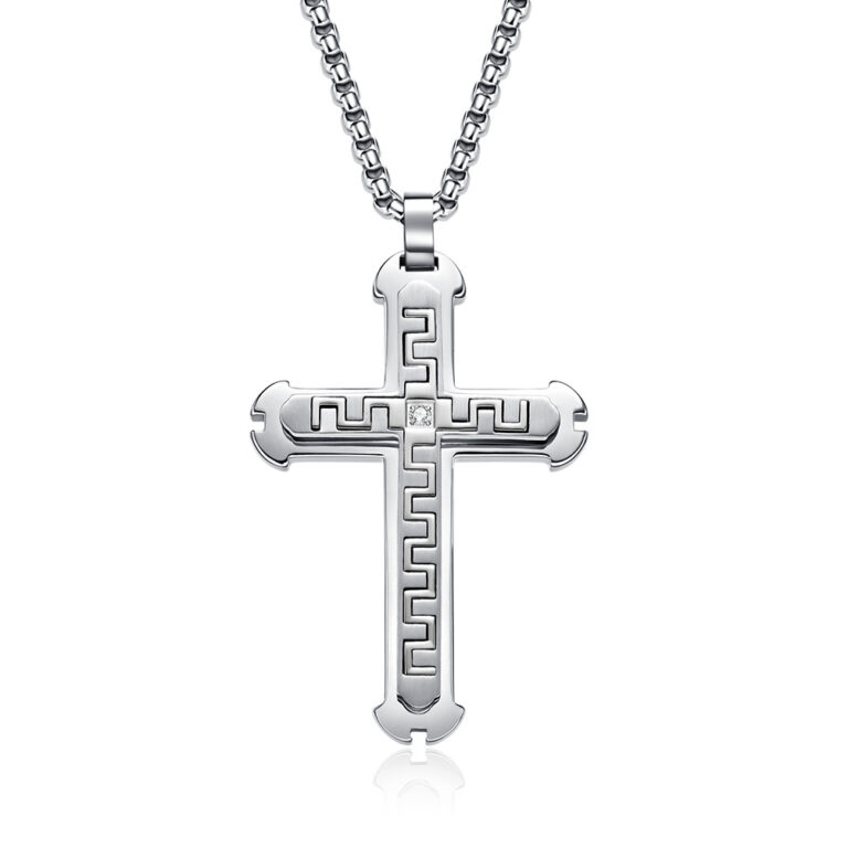 Men’s 316 Stainless steel beveled fashion cross pendant with CZ stones