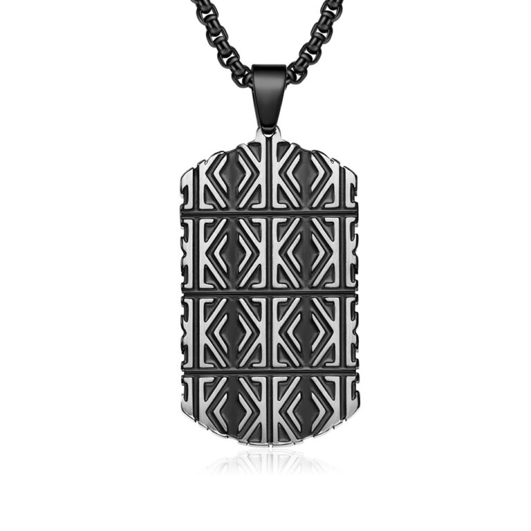 Men’s 316 Stainless steel original innovative Chinese style leaf inspired pattern corrugated dog tag pendant in Steel/Gold/Black colors