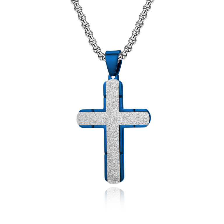 Men’s 316 Stainless Steel cross pendant in Steel and Black/Blue/Gold colors