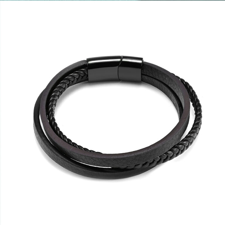 8.5” length Men & Women’s 316L stainless steel three-layer leather rope magnetic clasp American and European retro style bracelet