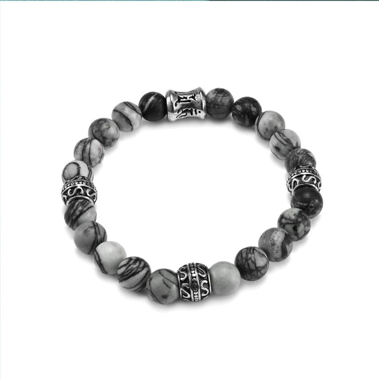 8.5” length Guochao volcanic and natural stone men’s beaded vintage Chinese style bracelet
