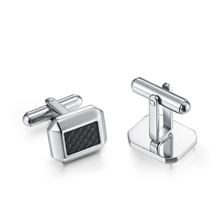 width 12.5mm height 14.5mm 316L stainless steel beveled glue dripping style inlaid carbon fiber men’s cufflinks
