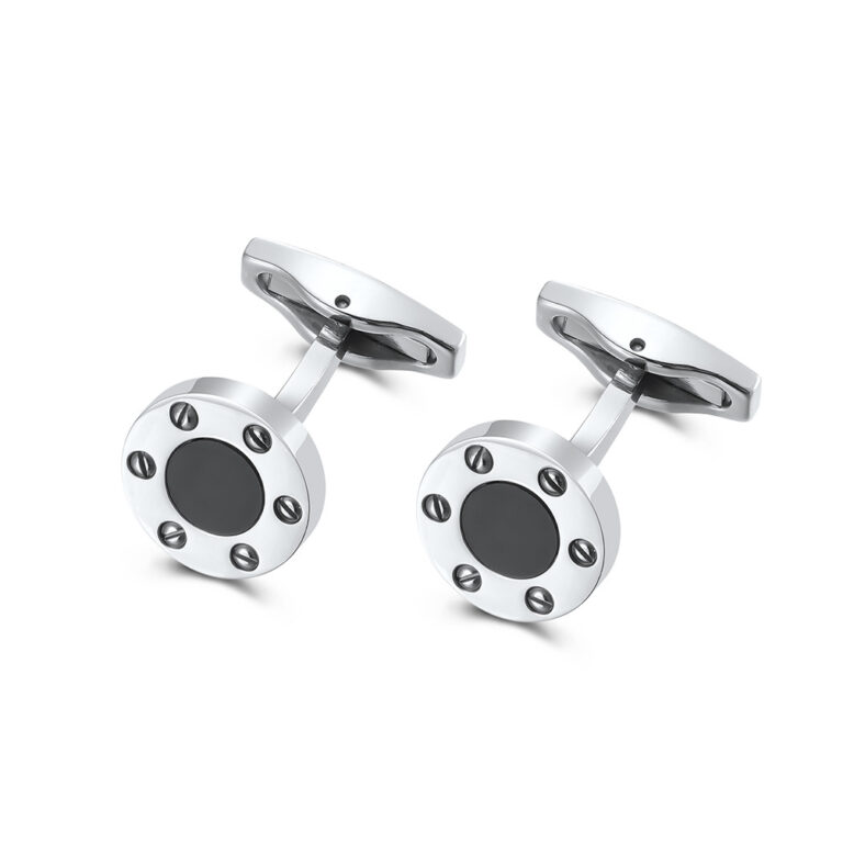 width 14mm height 14mm 316L stainless steel vintage screws round onyx cufflinks