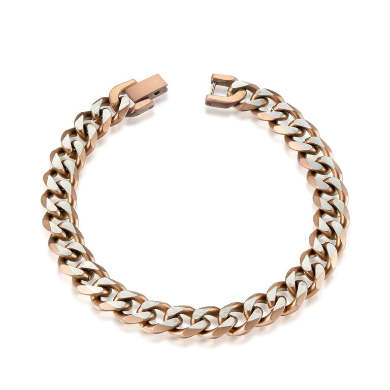 Men’s Brushed Stainless Steel 6-sided Chain Bracelet in IP Gunmetal and Coffee colors