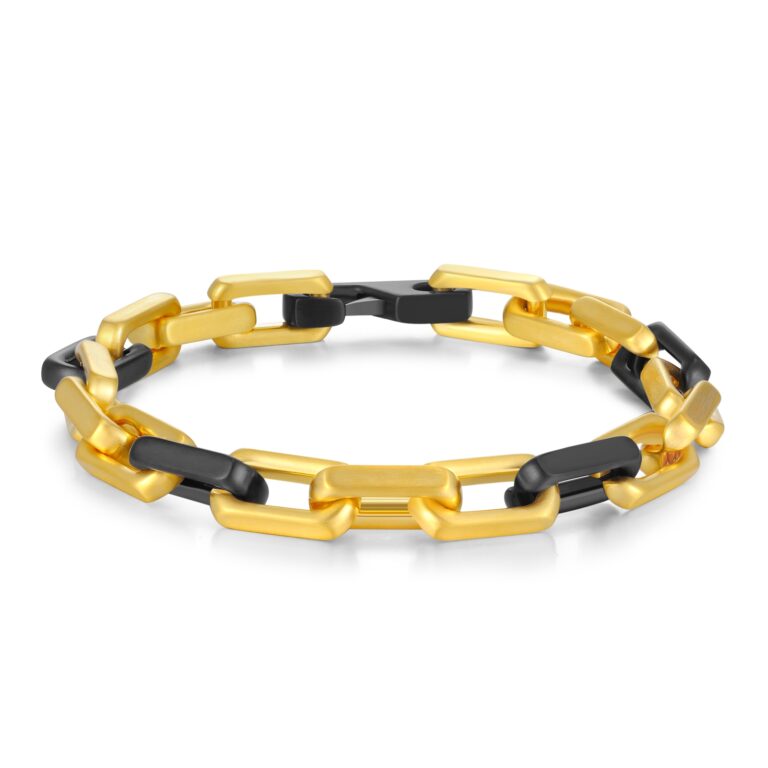 10mm Matte finish Oversized square links chunky bracelet/chain with two tone IP black&18K gold plated color as pic