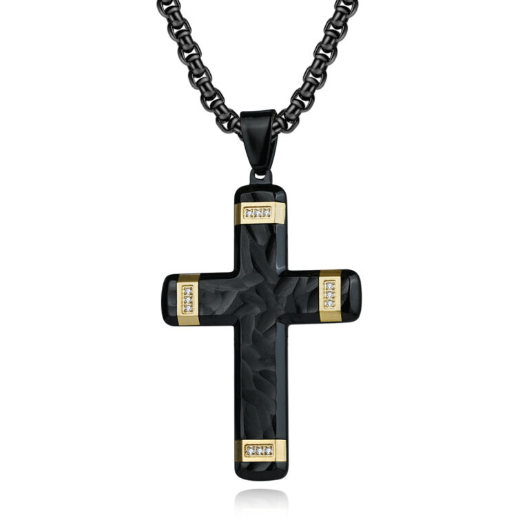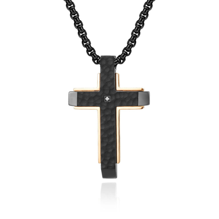 3mm x 24 inches round box chain New Gunmetal Stainless steel cross pendant with Unique Rhombus&wild grain pattern in Steel/Gunmetal/Gold IP Plated Colors