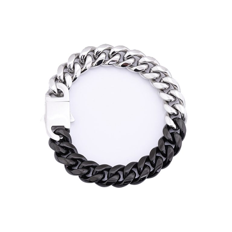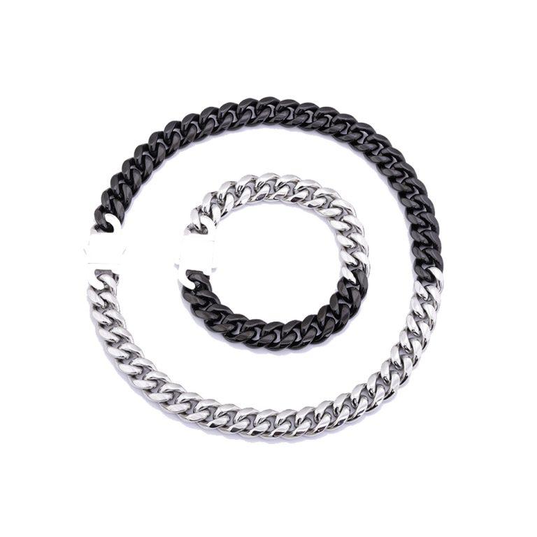 6/8/10/12/14mm width and 18/20/22/24 inches Miami Cuban Link Chain Bracelet diamond Lock Real Solid half steel and half Black IP Plated Finish Stainless Steel, Miami Cuban Link bracelet/necklace with lock Box Clasp