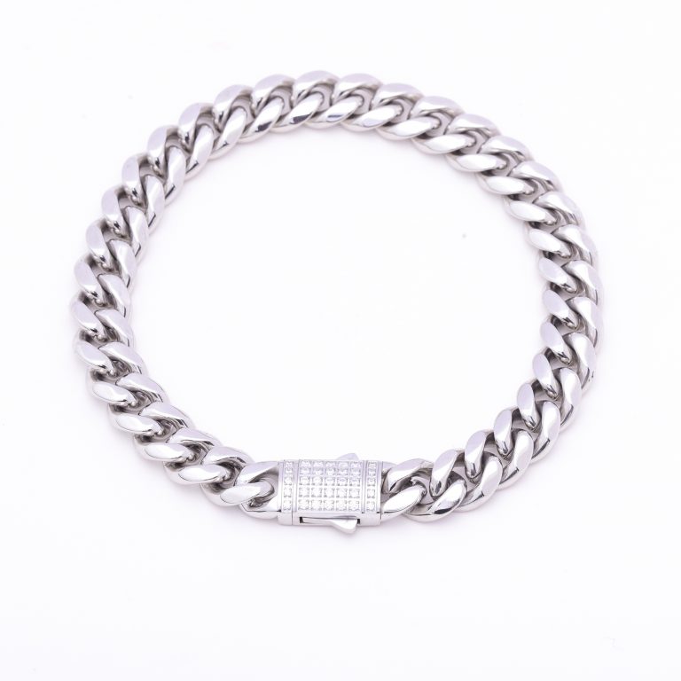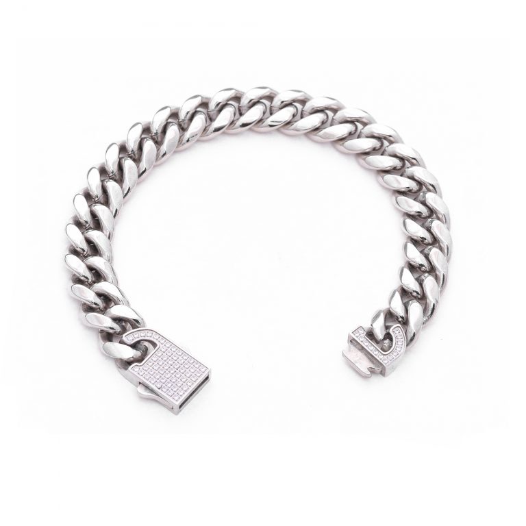 8/10/12/14 mm in width and 8/8.5/9/9.5/18/20/22/24 inches in length Miami Cuban Link Chain Bracelet diamond Lock Real Solid with IP Blue/ Black/18K gold/gunmetal/steel Finish Stainless Steel, Miami Cuban Link bracelet/necklace with lock Box Clasp