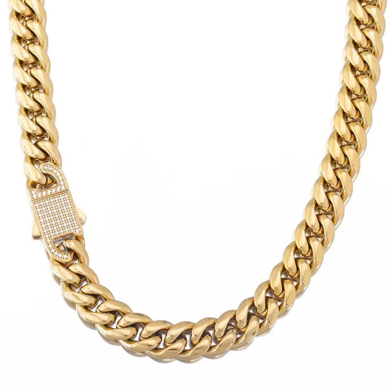 6/8/10/12/14mm width and 18/20/22/24 inches Miami Cuban Link Chain Bracelet diamond Lock Real Solid 18K Gold /Steel Color Finish Stainless Steel, Miami Cuban Link bracelet/necklace to link lock Box Clasp with CZ inlaid by CNC Setting