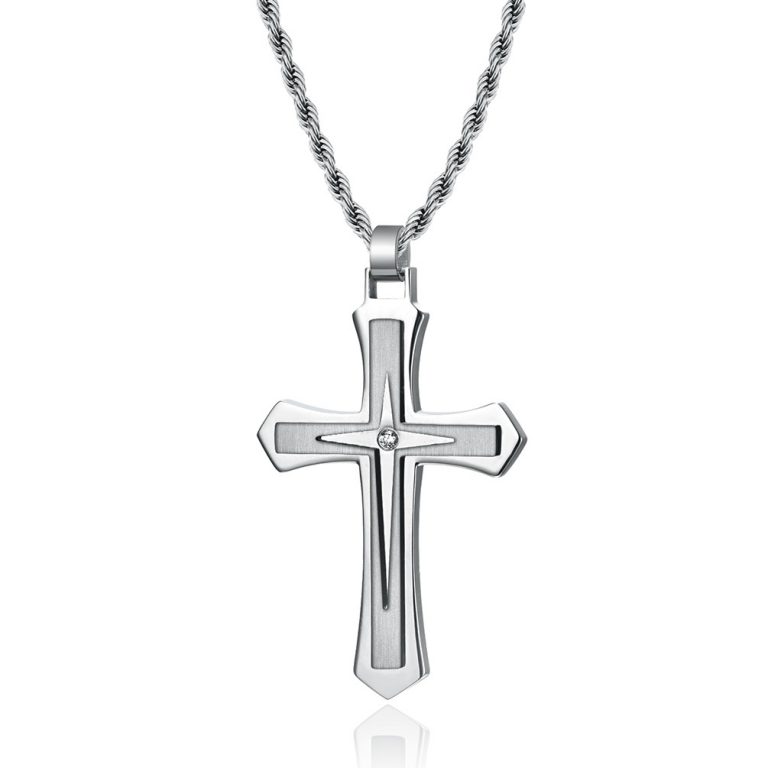 Men’s Stainless Steel Cross Pendant In high polished finished silver color with 22/24 Inches Round Box/Rope /Curb Chain Necklace