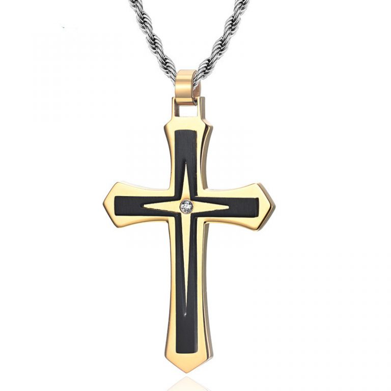 Men’s Cross Pendant with Solid Carbon Fiber Stainless Steel Crucifix Necklace Men Boys Box Chain 22/24 Inches TT Silver Gold black Blue plated Available