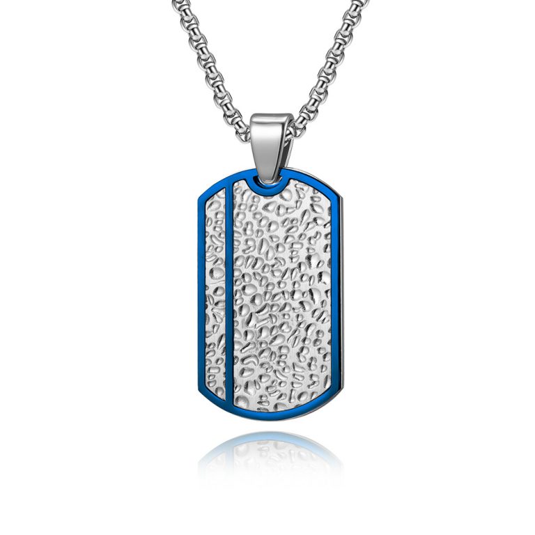 Men’s 22/24 Inch Stainless Steel Box and Dog tag Pendant Necklace for Men in Two Tone Silver Blue Yellow Gold Black IP Plated