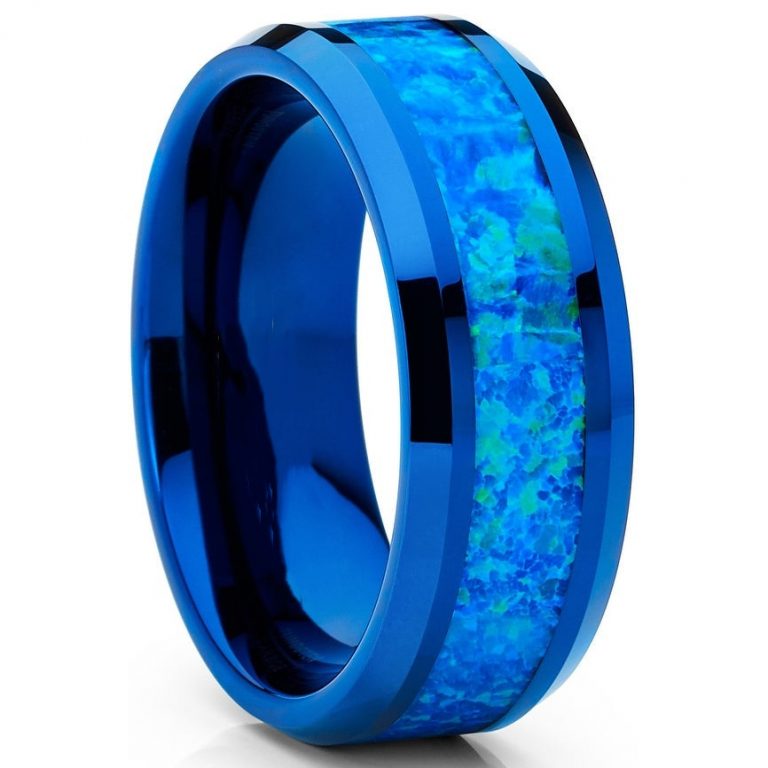 Men’s 8mm Black Tungsten Carbide Ring Blue Rings for Men Blue Carbon Fiber Polished Finish Comfort Fit Size 6-15