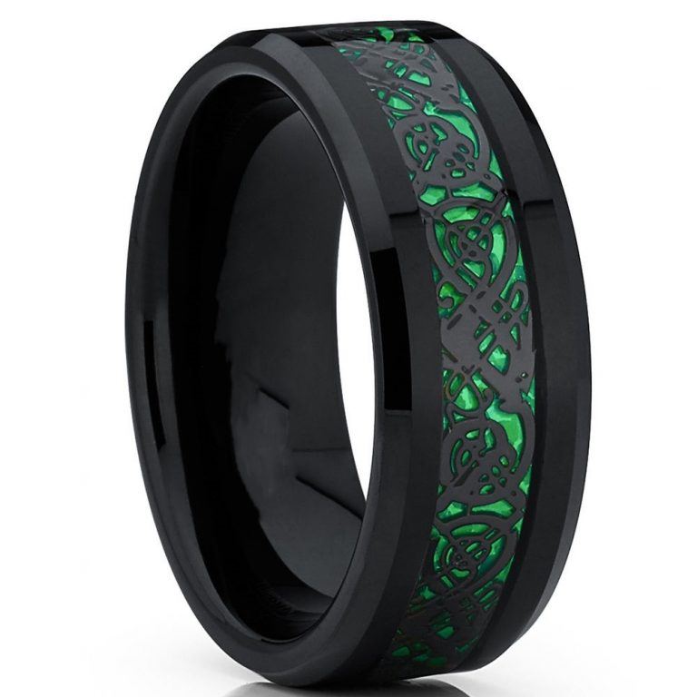 Men’s 8mm Black Tungsten Carbide Ring green Rings for Men green Carbon Fiber Polished Finish Comfort Fit Size 6-15