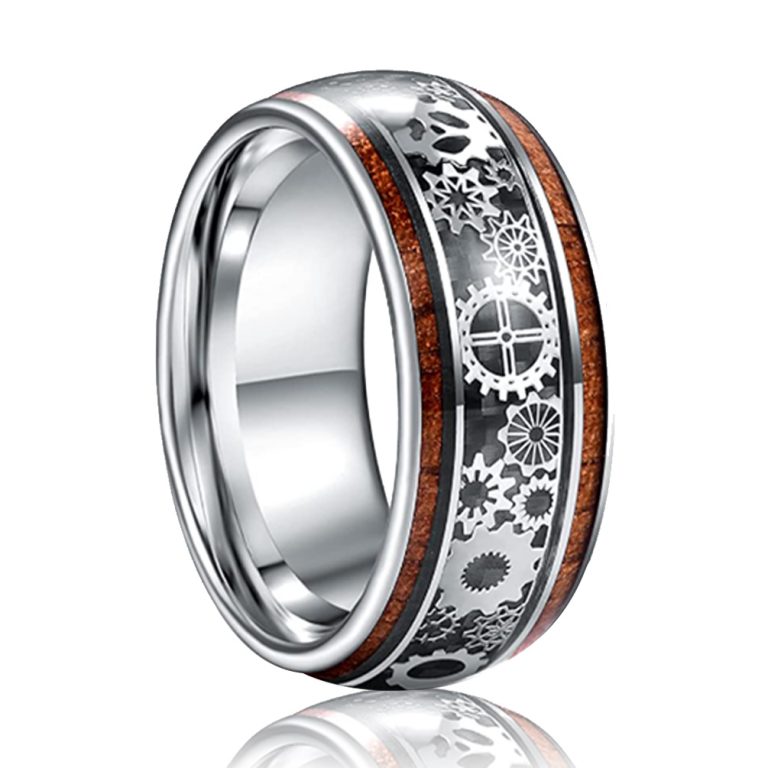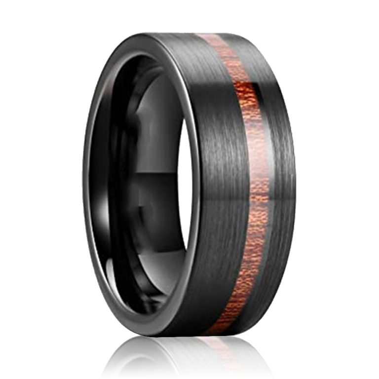 Nature 8mm Black/Silver Tungsten Ring Tungsten Carbide Wedding Band for Men Wood Inlay Matte Brushed Finish