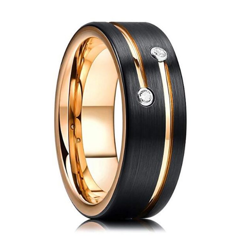 Men’s 8mm Tungsten carbide wedding bands with Blue, black and yellow gold IP Plating & Stones Inlaid by CNC setting