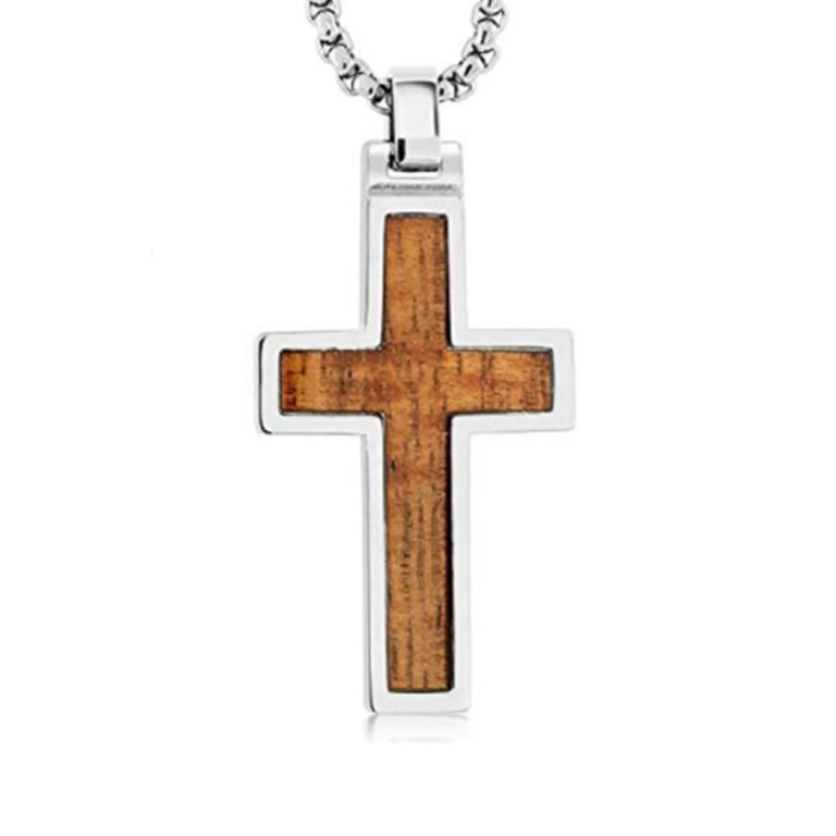 Tungsten Carbide Pendant with High shine finish & natural dark color wood inlaid