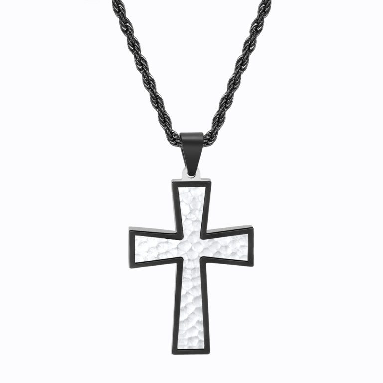 Matte Finished 316L Stainless Steel Hammered Cross Pendant and Black IP