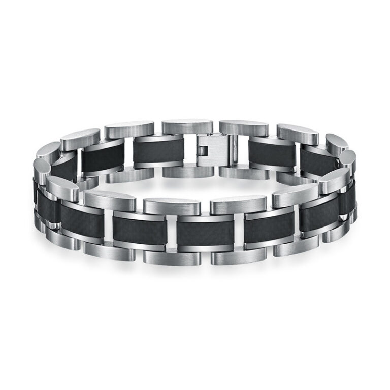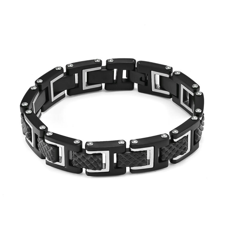 Men’s Polished Finish 316L Stainless Steel in Steel and Black IP Bracelet with embossed diamond pattern