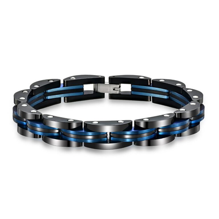 316L Stainless Steel two-tone black and blue IP, bracelet