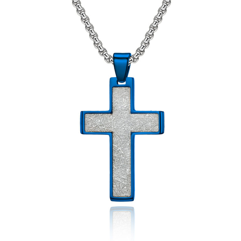 Men’s 316 Stainless steel & innovative wire patch dripping glue cross pendant in Black/Blue/Gold colors