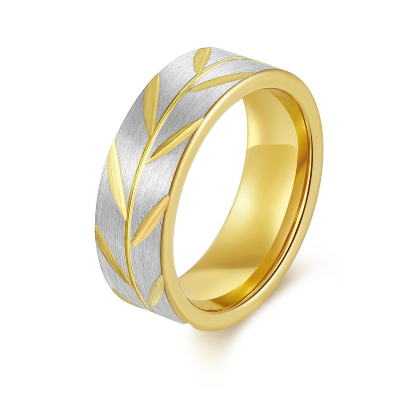 8mm-Tungsten/S.st/Titanium Brushed ring with pattern in IP Rose Gold / Yellow Gold