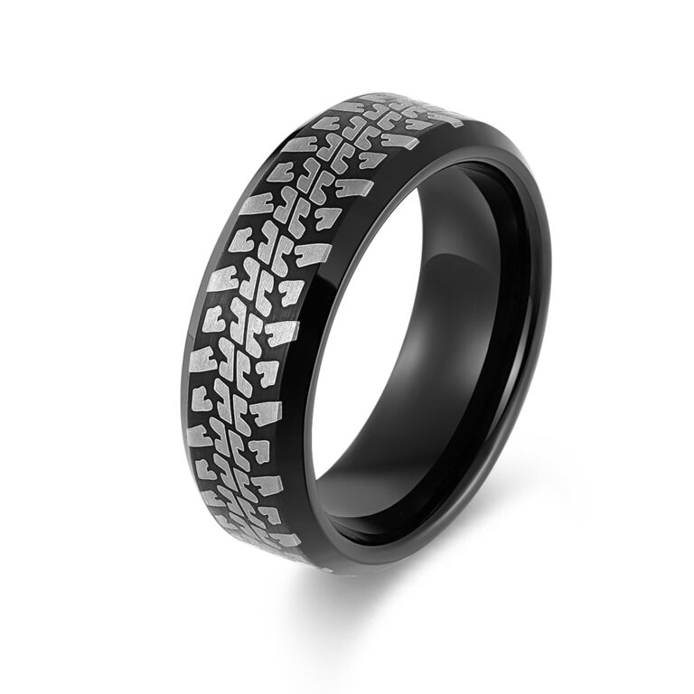 8mm-Tungsten/S.st/Titanium Polished ring with backbone pattern in IP Black