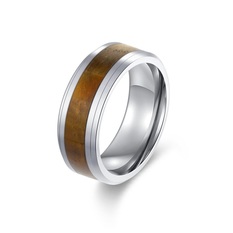 8mm-Tungsten/S.st/Titanium Polished ring with wood inlay