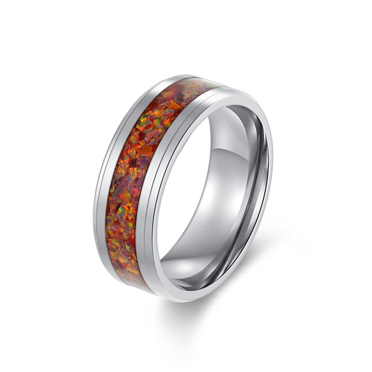 8mm-Tungsten/S.st/Titanium Polished ring with red opal inlay