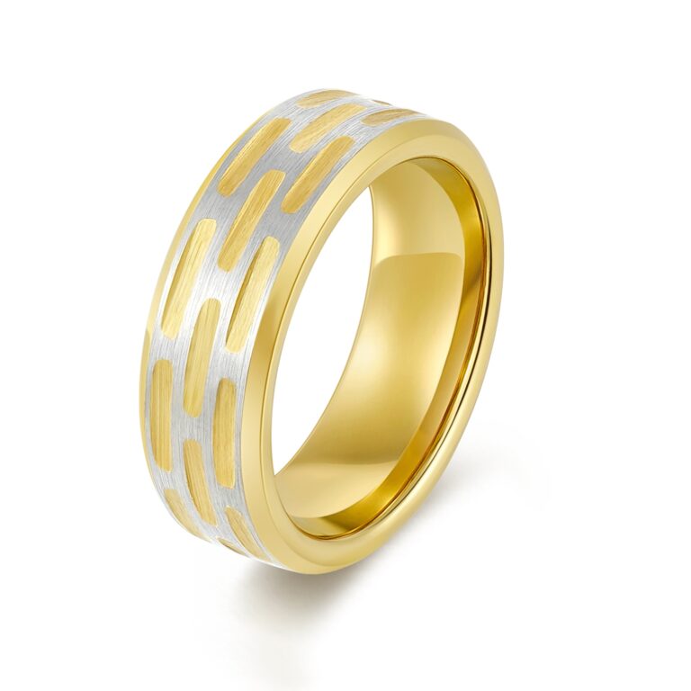 8mm-Tungsten/S.st/Titanium Brushed ring with pattern in IP Black / Yellow Gold / Rose Gold
