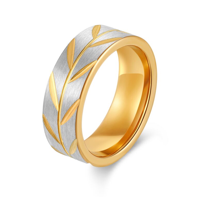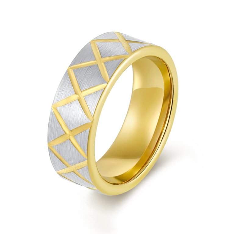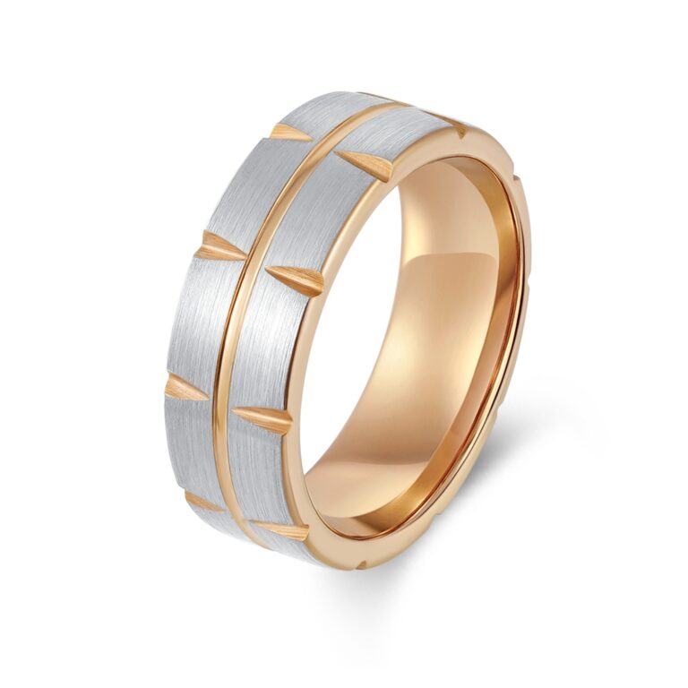 8mm-Tungsten/S.st/Titanium Brushed ring with pattern in IP Rose Gold / Yellow Gold