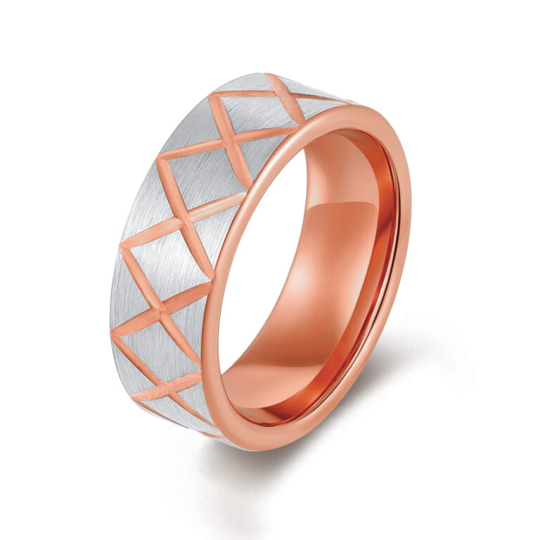 8mm-Tungsten/S.st/Titanium Brushed ring with pattern in IP Rose Gold