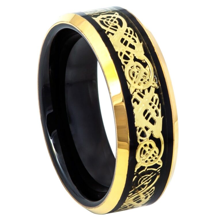 Men’s Tungsten Carbide Celtic Dragon Inlay Wedding Band Ring