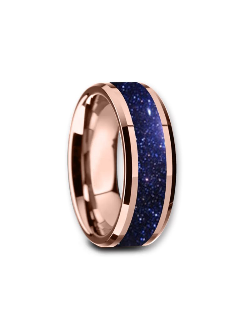 8mm-Tungsten/S.st/Titanium ring with Natural Blue Golden Sand Stone inlay and Rose gold IP Plating
